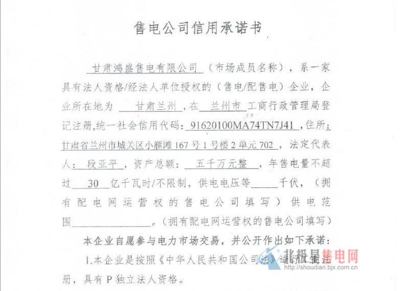 附件:甘肅鴻盛售電有限公司公示信息