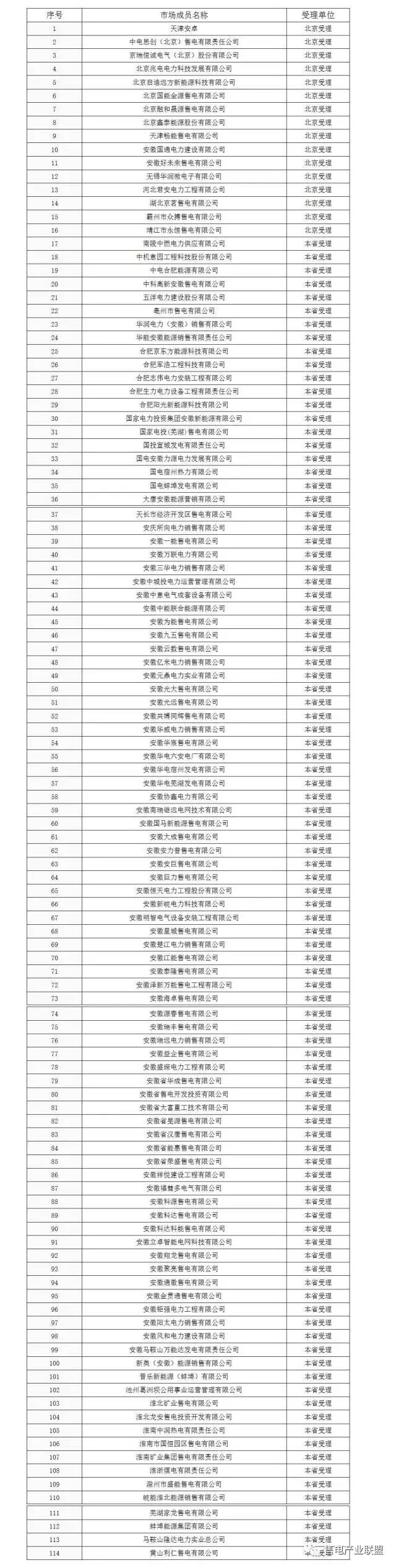 安徽第一批市場(chǎng)準(zhǔn)入的售電公司