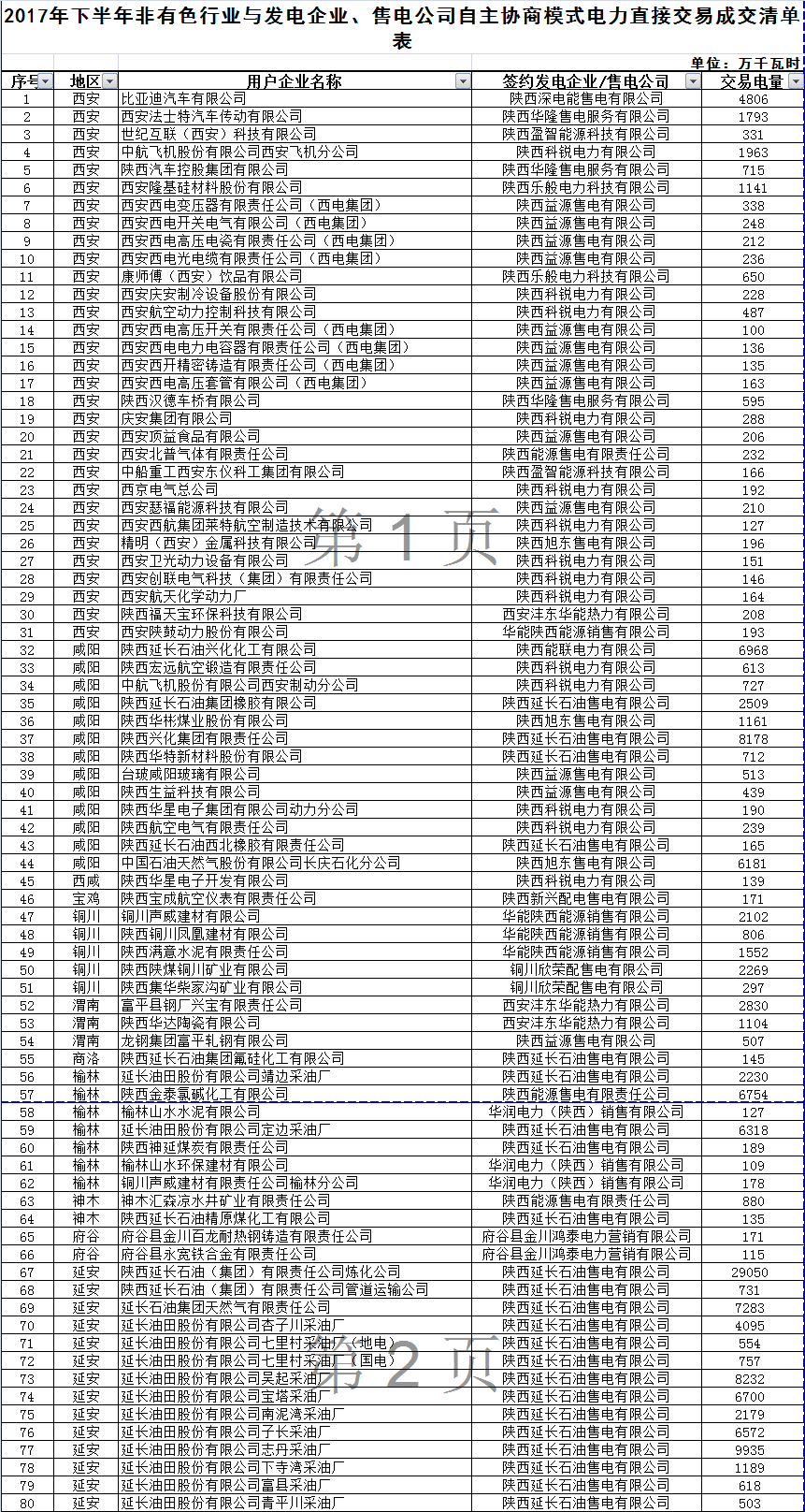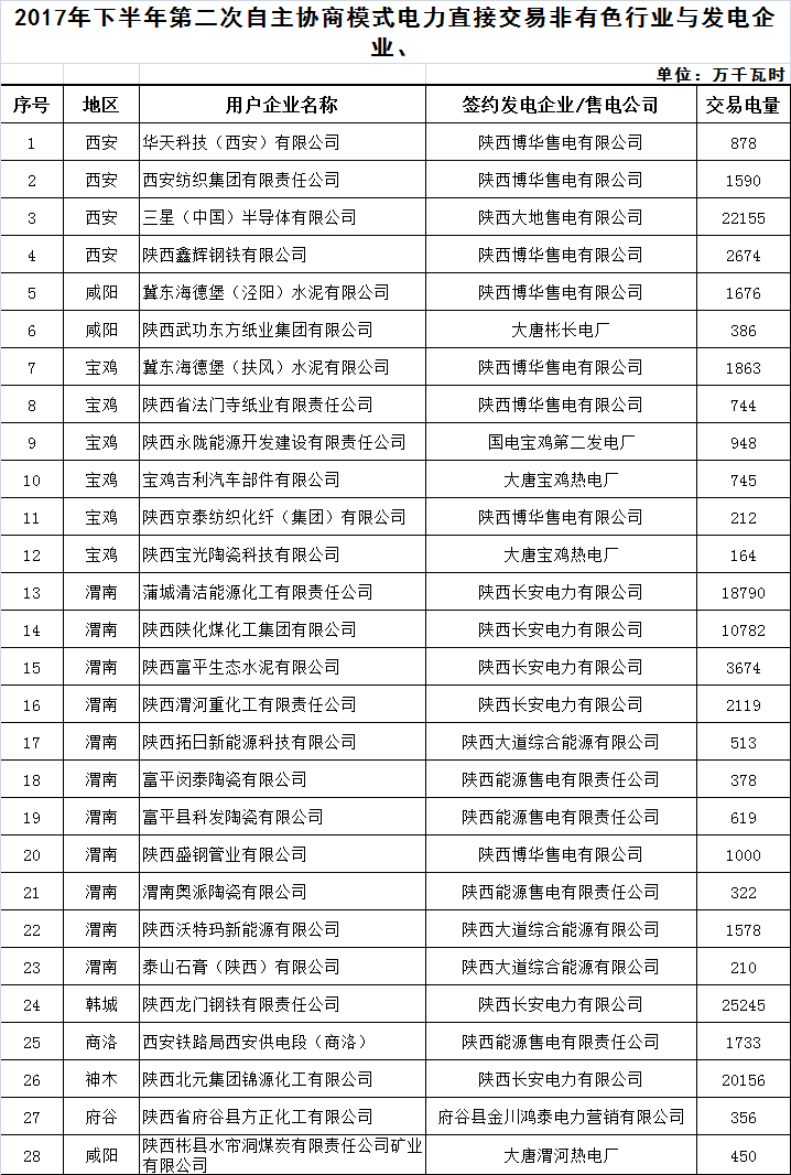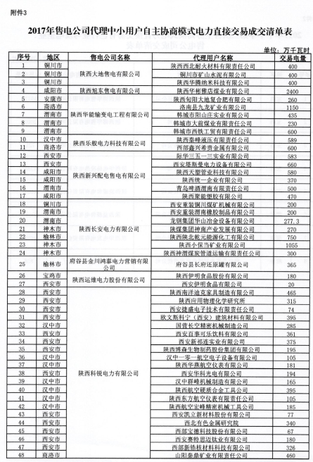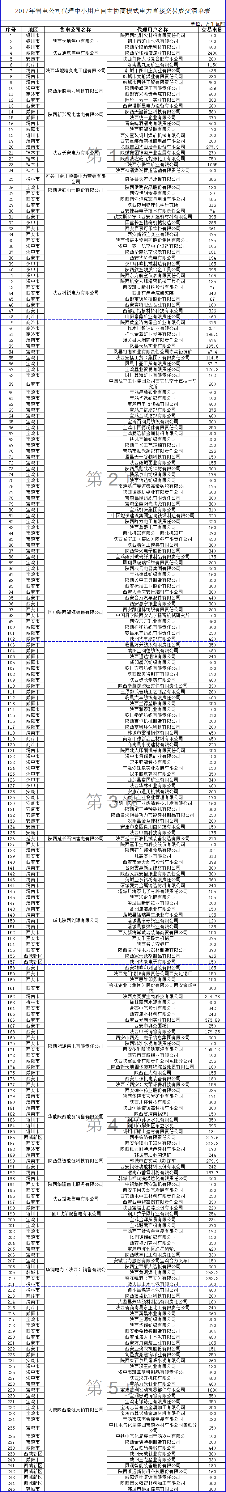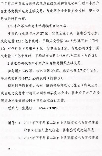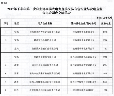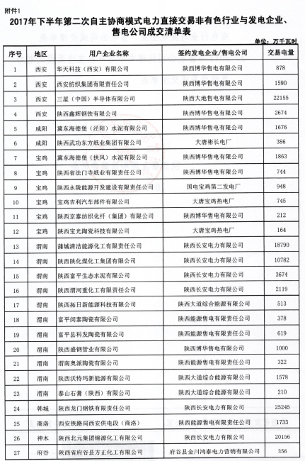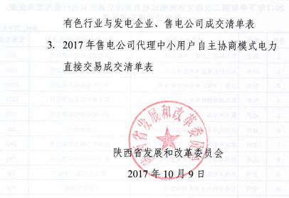 陜西10日開展2017下半年電力用戶和發(fā)電企業(yè)自主協(xié)商模式第二期電力直接交易(附成交清單表)