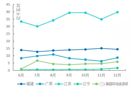 圖 2重點(diǎn)地區(qū)2018年6-12月月度集中競(jìng)價(jià)交易的成交電量