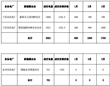甘肅電力交易中心日前發(fā)布了《2019年度自備電廠電量置換補(bǔ)充交易結(jié)果公告》,蘭鋁自備電廠與新能源發(fā)電企業(yè)成交電量632.1萬(wàn)千瓦時(shí)、金川自備電廠與新能源發(fā)電企業(yè)成交電量76.1萬(wàn)千瓦時(shí)。
