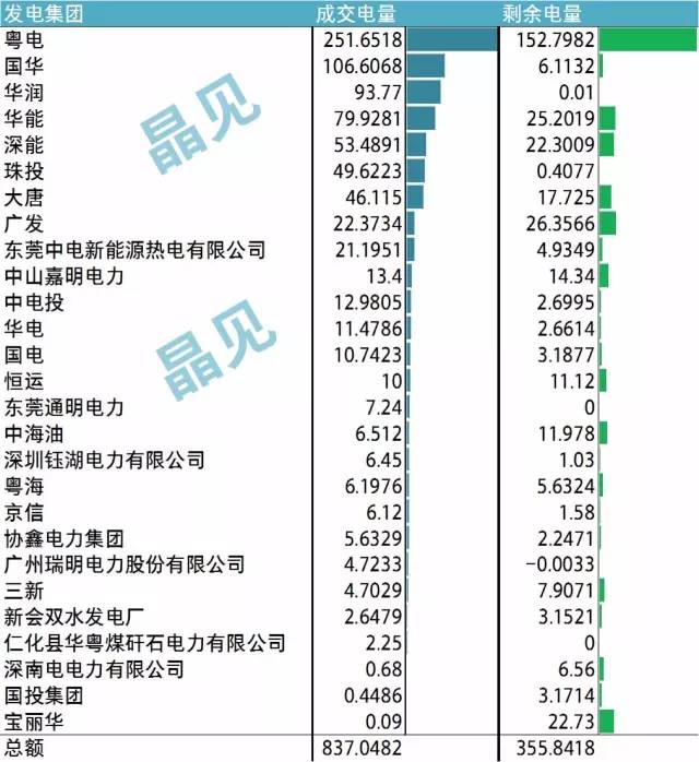 1,剩余可發(fā)電量前三甲為:粵電,廣發(fā)和華能;