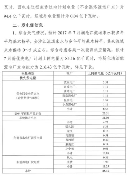 西電東送市場(chǎng):7月份西電東送框架協(xié)議內(nèi)電量為94.4億千瓦時(shí)(其中,送廣東77億千瓦時(shí),送廣西17.43億千瓦時(shí))。