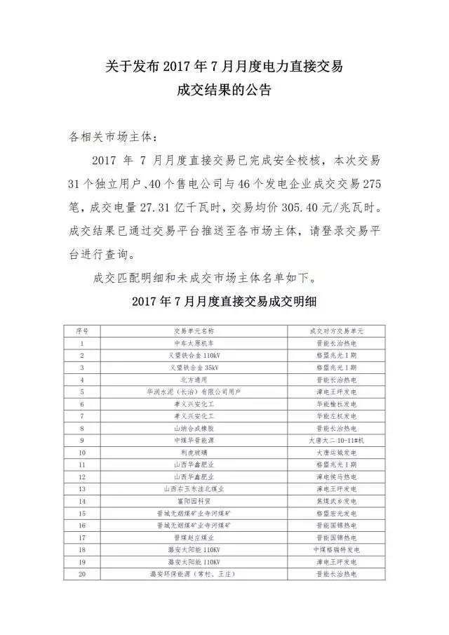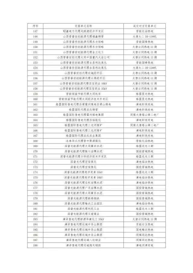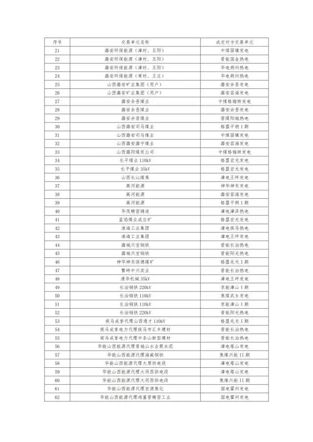 6月28日,不只是山東除了結(jié)果,山西7月月度電力直接交易的成交結(jié)果也同樣出爐。但是這份公告里的成交明細,只有配對明細,并沒有成交電量的明細。