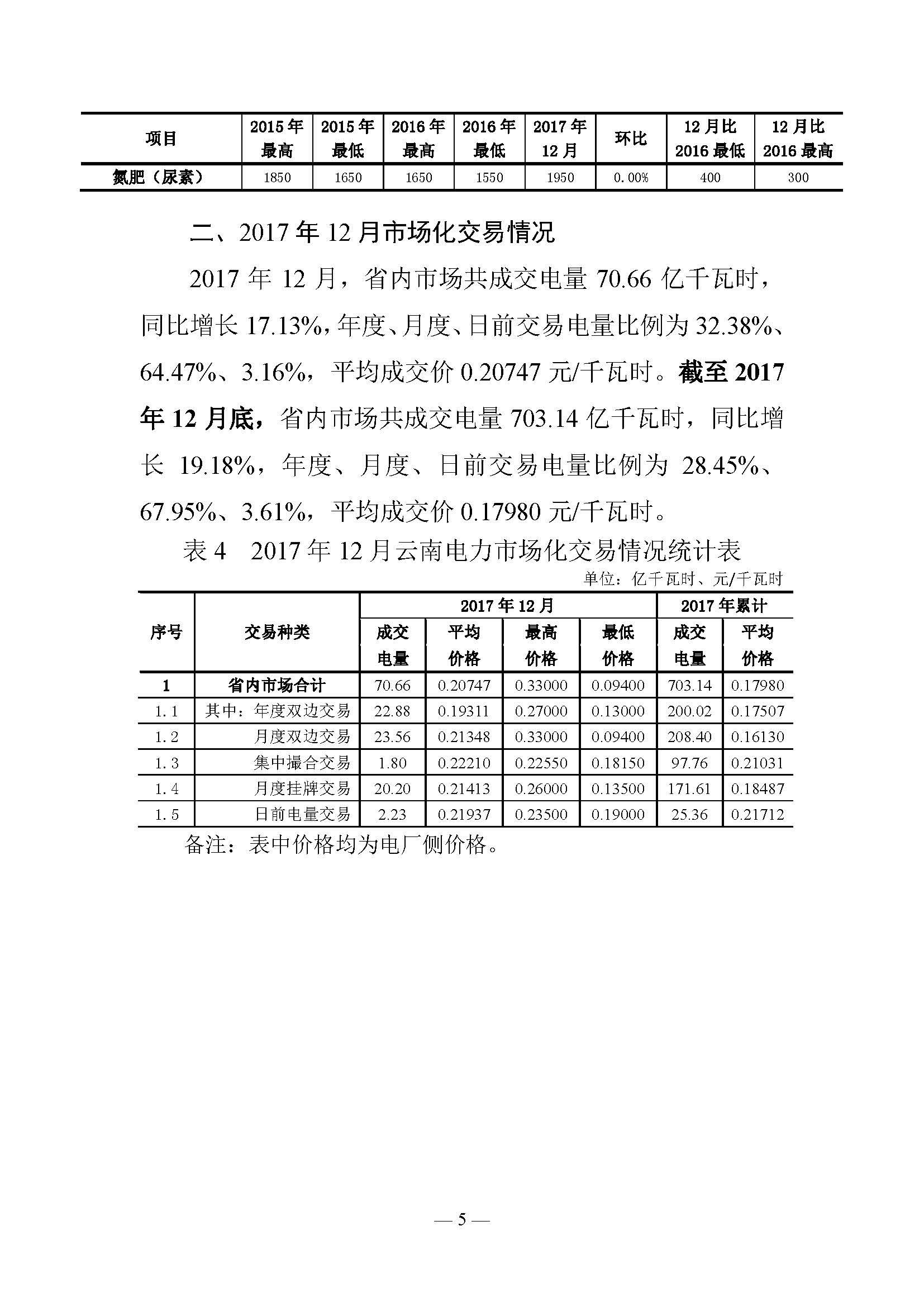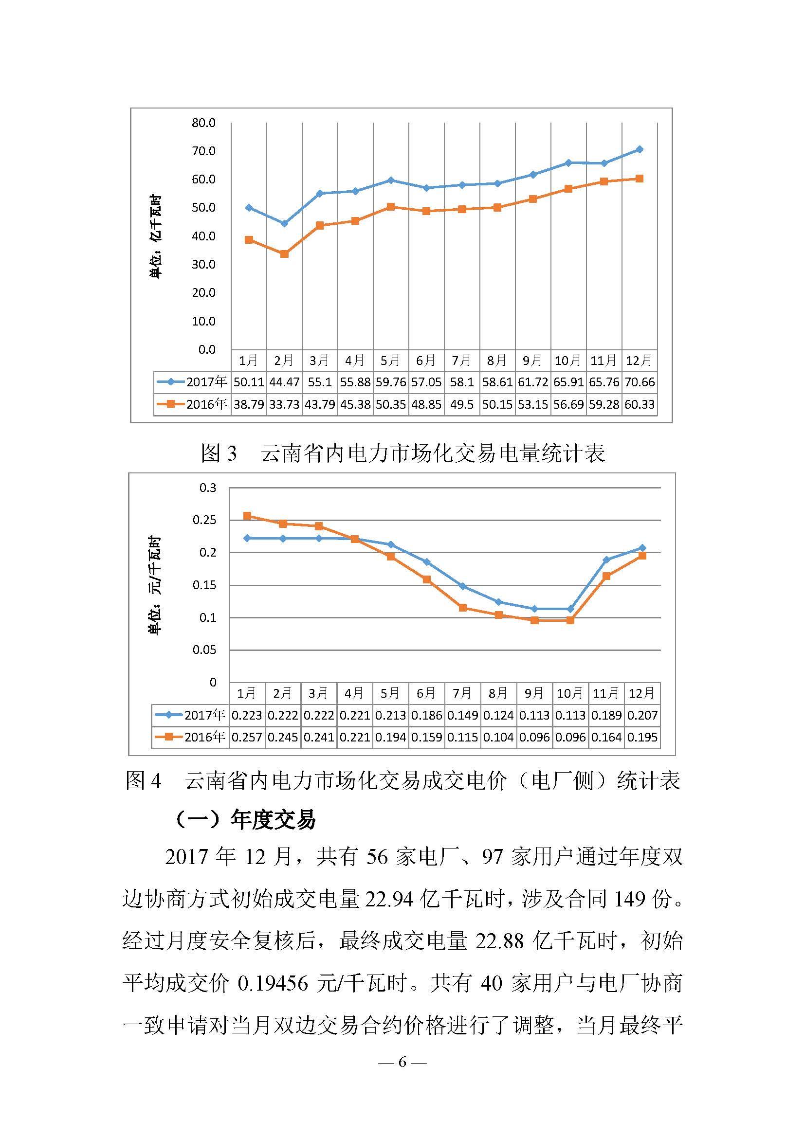 2017年12月,省內(nèi)市場共成交電量70.66億千瓦時,同比增長17.13%,年度、月度、日前交易電量比例為32.38%、64.47%、3.16%,平均成交價0.20747元/千瓦時。截至2017年12月底,省內(nèi)市場共成交電量703.14億千瓦時,同比增長19.18%,年度、月度、日前交易電量比例為28.45%、67.95%、3.61%,平均成交價0.20747元/千瓦時。截至2017年12月底,省內(nèi)市場共成交電量703.14億千瓦時,同比增長19.18%,年度、月度、日前交易電量比例為28.45%、67.95%、3.61%,平均成交價0.17980元/千瓦時。