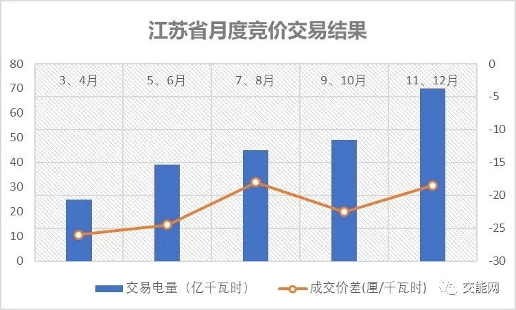 江蘇省在過(guò)去一年,從三月份起每?jī)蓚€(gè)月進(jìn)行一次月度競(jìng)價(jià)交易,從上表可以看出,其交易電量呈線性持續(xù)增加。
