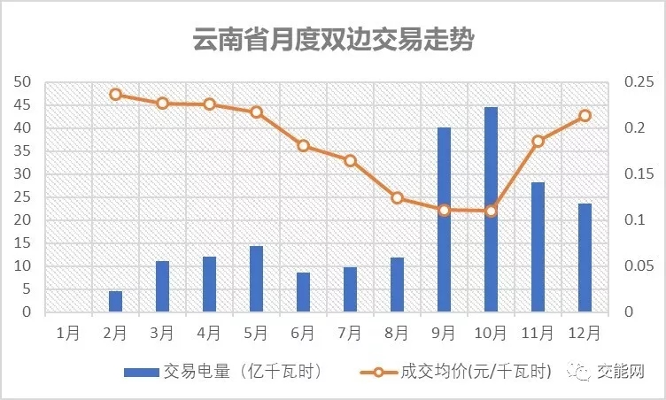 云南省作為信息披露最好的省份之一,其交易結(jié)構(gòu)十分明了。每月成交電量分為月度集中撮合交易成交電量、月度雙邊交易成交電量、月度掛牌交易成交電量及年度雙邊交易月度分解電量。其集中撮合交易電量9月以來(lái)持續(xù)低下,月度雙邊成交電量也呈下降趨勢(shì),而掛牌交易成交電量卻明顯呈拋物線形式增加。這交易趨勢(shì)有望在2018年持續(xù)下去。但總體而言,其月度總成交電量仍保持著穩(wěn)定增加。
