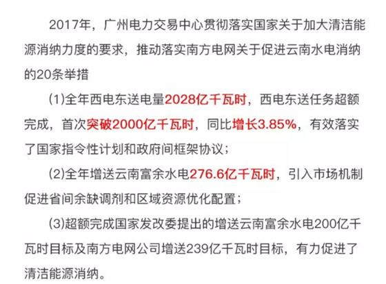 廣州電力交易中心日前發(fā)布了《2017年南方區(qū)域跨區(qū)跨省交易情況通報(bào)》,通知中稱,2017年西電東送電量2028億千瓦時,西電東送任務(wù)超額完成,