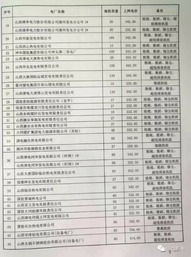 1.山西燃煤發(fā)電機組標桿上網(wǎng)電價提高1.15分/千瓦時,提高后燃煤機組標桿上網(wǎng)電價為0.332元/千瓦時。