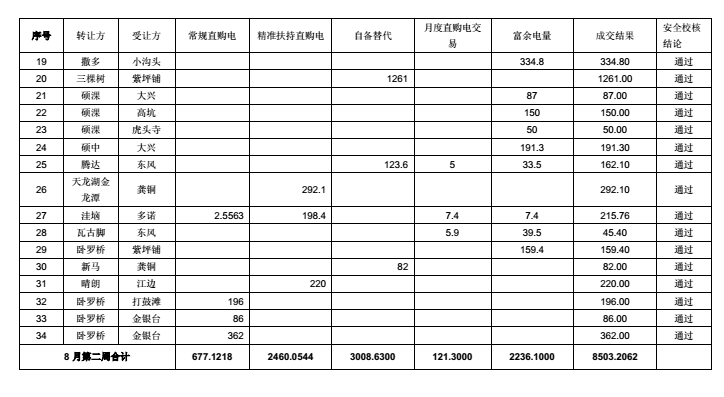 四川8月第二周市場合同電量轉讓結果 省內(nèi)成交電量8503.2萬千瓦時