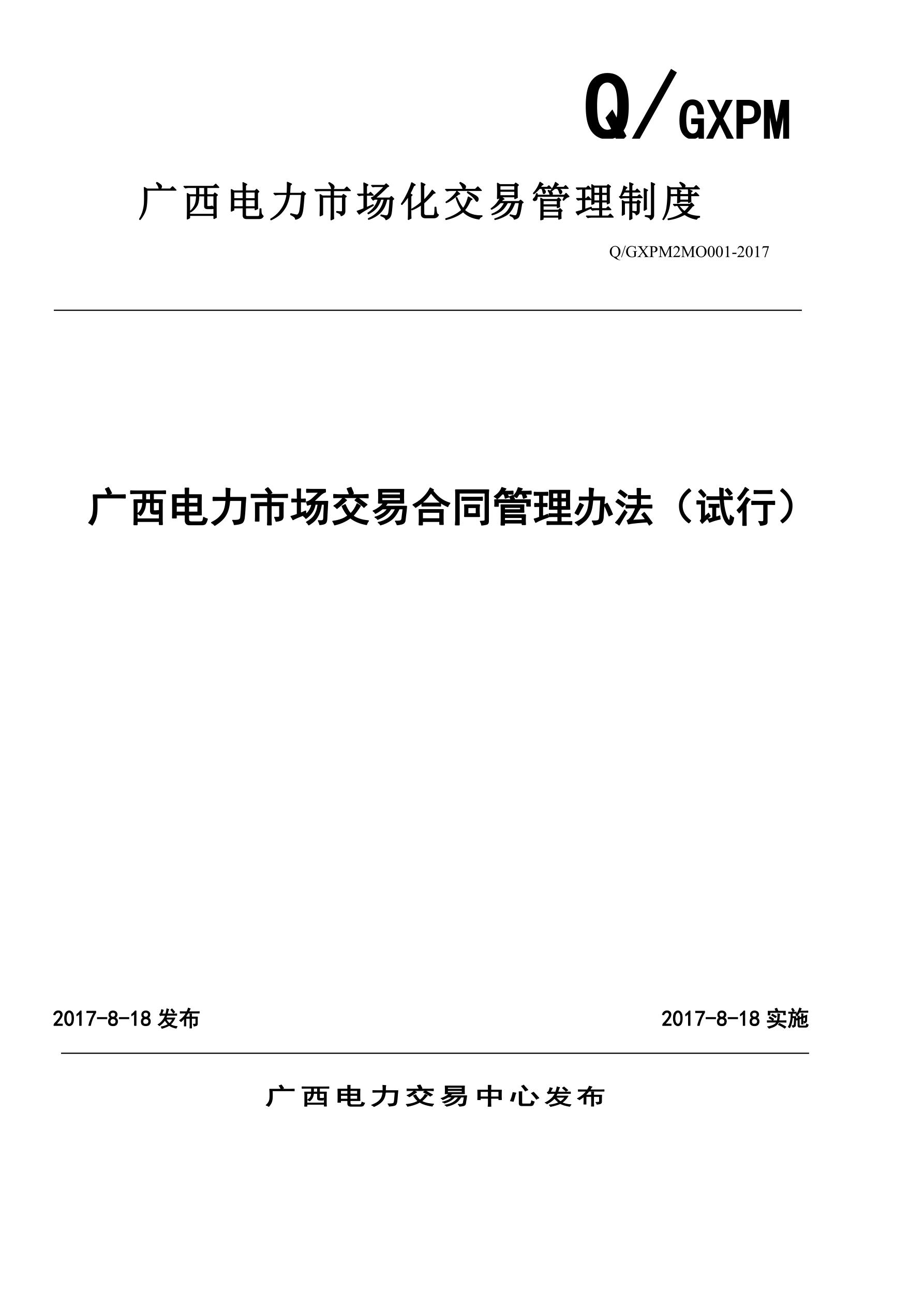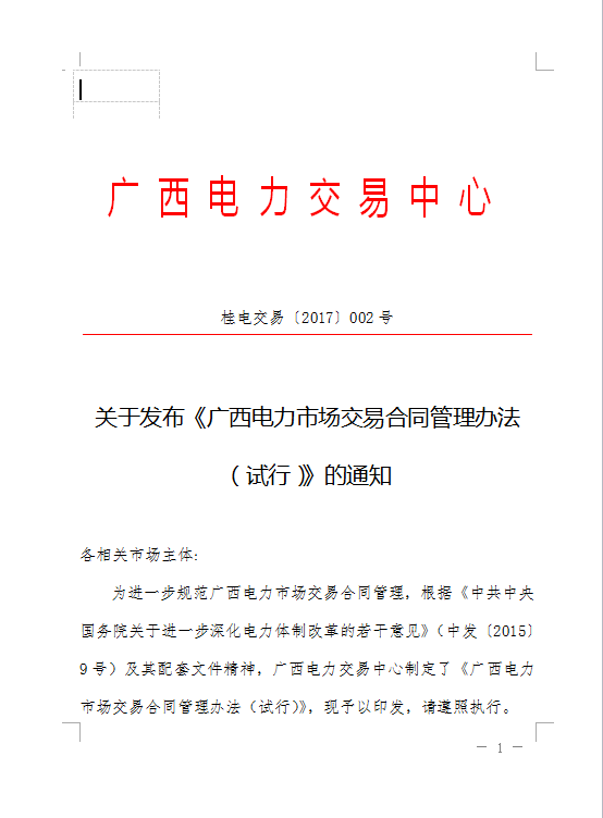 關于發(fā)布《廣西電力市場交易合同管理辦法(試行)》的通知