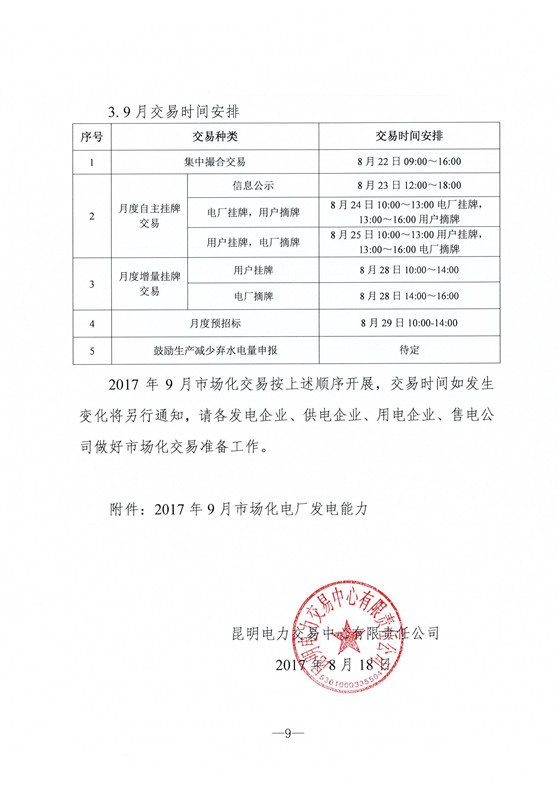 云南9月電力市場化交易信息披露:雙邊交易初步成交52.5億千瓦時