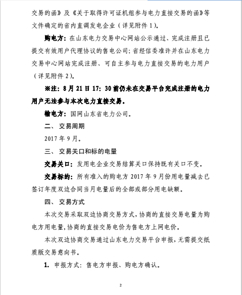 山東9月電力直接交易(雙邊協(xié)商)22日展開(kāi)