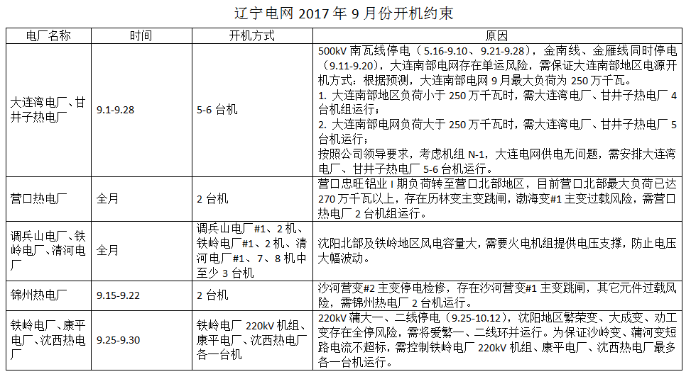 調(diào)度提供的2017年9月機(jī)組運(yùn)行約束及斷面受限信息詳見(jiàn)附件。