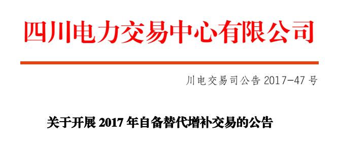 四川開(kāi)展2017年自備替代增補(bǔ)交易