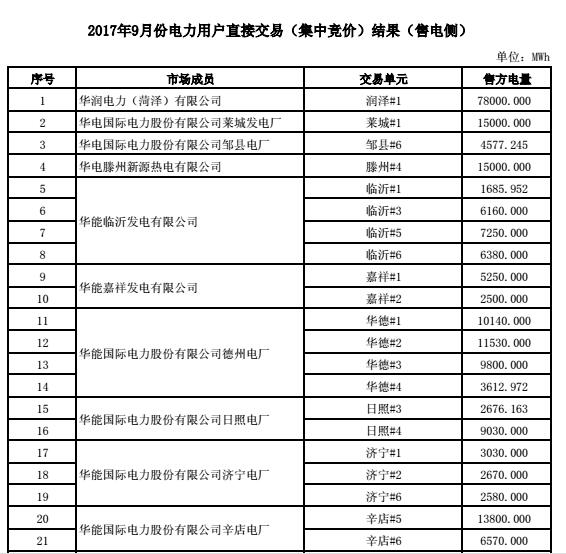 山東9月份電力直接交易(集中競價)結果:交易電量4.5348億千瓦時