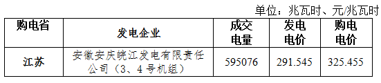 在本次交易中,江蘇省電力公司購電量為34.965億千瓦時,平均購電報價為317.4元/兆瓦時。