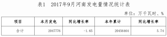 2017年9月,河南省全社會(huì)用電量247 55億千瓦時(shí),同比增長3 05%;累計(jì)用電量2398 99億千瓦時(shí),同比增長7 07%。全省發(fā)電量204 78億千瓦時(shí),同比減少1 65%,累計(jì)發(fā)電量2045 65億千瓦時(shí),同比增長5 74%。一、電力生產(chǎn)