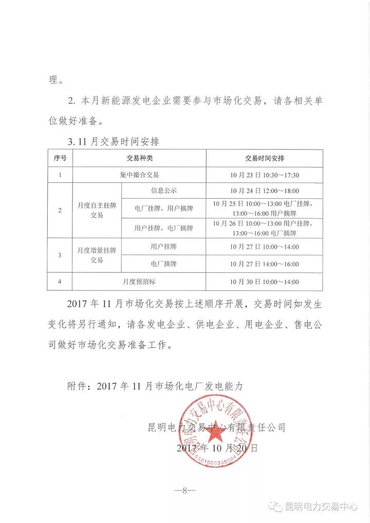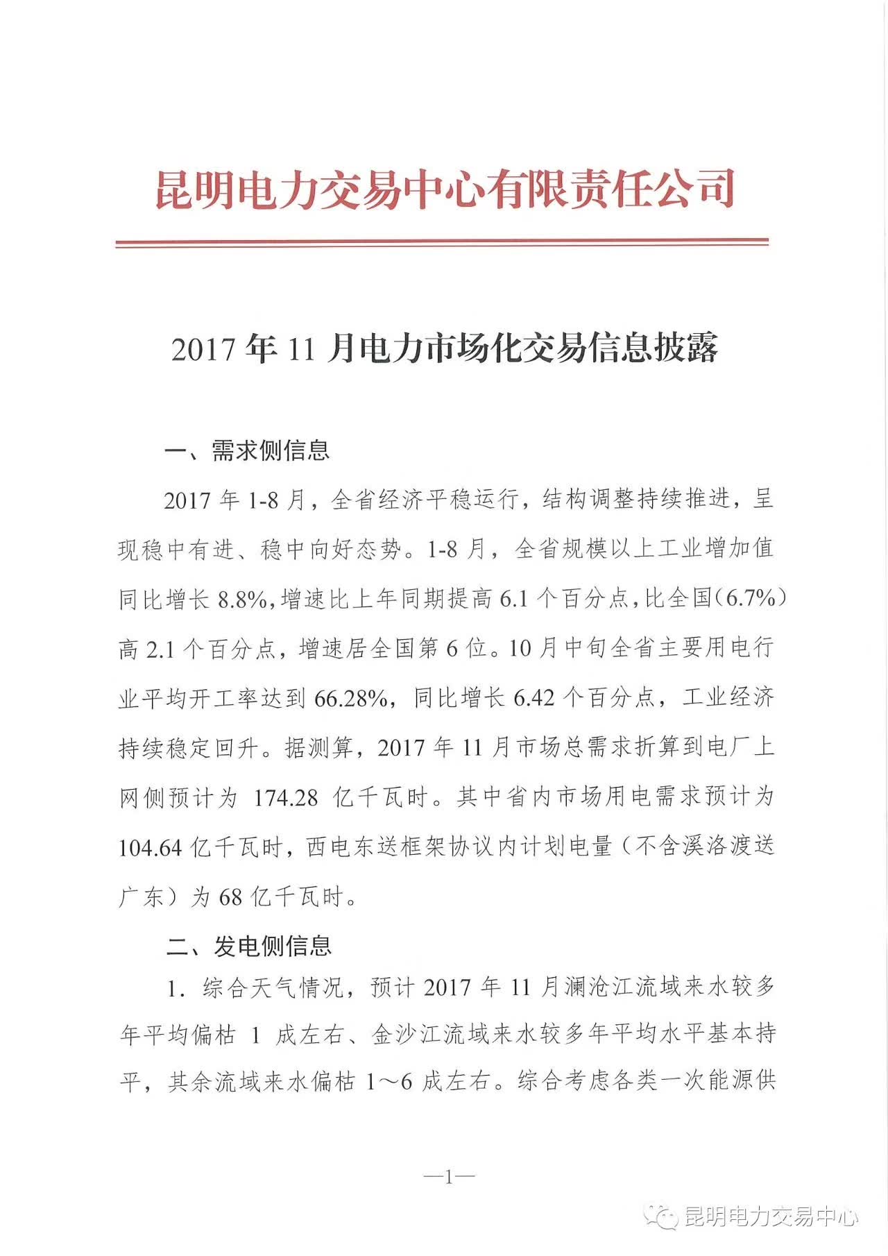 2017年10月20日昆明電力交易中心發(fā)布了云南11月電力市場(chǎng)化交易信息,月報(bào)中由2017年11月需求側(cè)、發(fā)電側(cè)、可競(jìng)價(jià)電量、直流通道能力及交流聯(lián)絡(luò)線運(yùn)行控制要求等幾大方面入手,涉及上網(wǎng)側(cè)電量、年度交易、月度交易