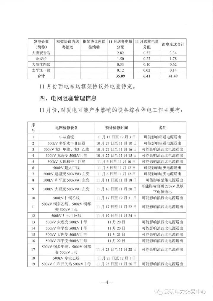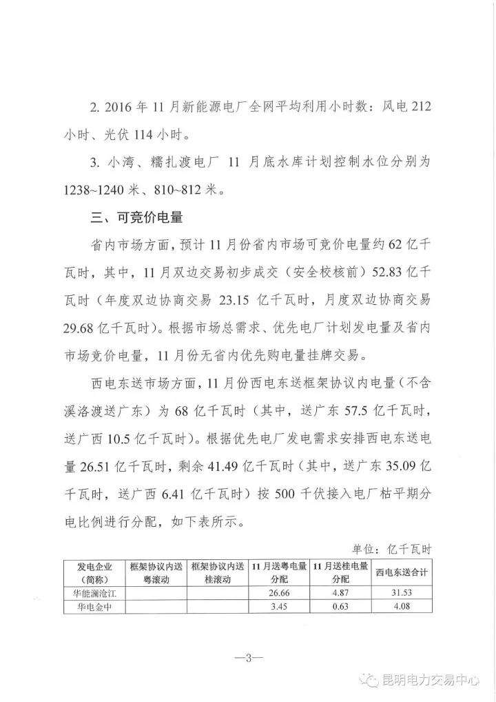 11月份省內(nèi)市場(chǎng)可競(jìng)價(jià)電量約62億千瓦時(shí),其中雙邊交易初步成交(安全校核前)52.83億千瓦時(shí)。西電東送市場(chǎng)方面,11月份西電東送框架內(nèi)電量(不含溪洛渡送廣東)為68億千瓦時(shí)。