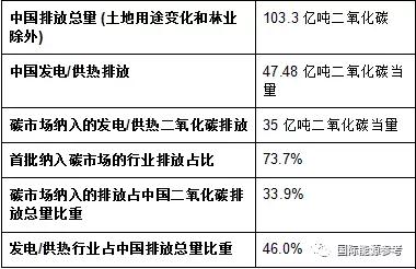 全國(guó)碳排放交易市場(chǎng)首批納入的發(fā)電/供熱行業(yè),其二氧化碳排放量占中國(guó)二氧化碳排放總量的46%(詳細(xì)數(shù)據(jù)請(qǐng)見文末表格)。中國(guó)碳論壇(China Carbon Forum)稱,電力行業(yè)將被納入全國(guó)碳排放交易市場(chǎng)的二氧化碳排放總量預(yù)計(jì)為35億噸,占該行業(yè)排放總量的74%。由于該行業(yè)二氧化碳排放量在全國(guó)排放總量中占比較大,即便全國(guó)碳排放交易市場(chǎng)首批僅納入發(fā)電/供熱行業(yè),碳市場(chǎng)覆蓋的二氧化碳排放量將占到全國(guó)排放總量的34%。