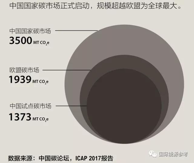中國(guó)全國(guó)碳排放交易市場(chǎng)是全球最大的碳市場(chǎng),規(guī)模超過(guò)歐盟(2017年歐盟碳市場(chǎng)交易規(guī)模為19.39億噸二氧化碳當(dāng)量)。