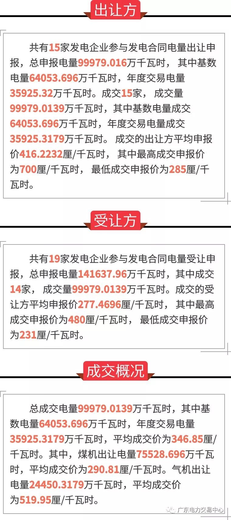 廣東2018年3月份發(fā)電合同轉(zhuǎn)讓集中交易:成交電量9.9979億千瓦時(shí)
