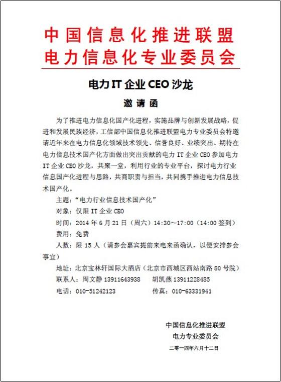 “電力IT企業(yè)CEO沙龍” 邀請(qǐng)函