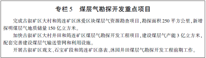 3.積極開(kāi)發(fā)煤層氣。堅(jiān)持煤層氣(煤礦瓦斯)井下與地面抽采利用并舉,推進(jìn)煤層氣工程中心等技術(shù)平臺(tái)建設(shè)和技術(shù)創(chuàng)新,加強(qiáng)煤層氣開(kāi)發(fā)經(jīng)濟(jì)技術(shù)評(píng)價(jià)和關(guān)鍵技術(shù)研發(fā),開(kāi)展低濃度瓦斯抽采利用,重點(diǎn)實(shí)施芙蓉、華鎣山等礦區(qū)井下瓦斯抽采利用規(guī)?;ㄔO(shè)。到2020年,瓦斯發(fā)電裝機(jī)容量達(dá)到15萬(wàn)千瓦。大力推進(jìn)古敘、筠連等礦區(qū)地面煤層氣勘探開(kāi)發(fā),探索形成適合川南煤層氣開(kāi)發(fā)的技術(shù)路線,健全資源協(xié)調(diào)開(kāi)發(fā)機(jī)制,促進(jìn)煤層氣產(chǎn)業(yè)化發(fā)展。到2020年,新增煤層氣探明地質(zhì)儲(chǔ)量150億立方米,建設(shè)煤層氣產(chǎn)能3億立方米。