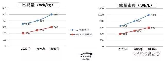 根據(jù)16年發(fā)布的“節(jié)能與新能源汽車(chē)技術(shù)路線(xiàn)圖”,我們可以大概對(duì)動(dòng)力電池發(fā)展趨勢(shì)有一個(gè)概念,下圖所示,到2020年,純電動(dòng)汽車(chē)電池單體比能量要達(dá)到350Wh/kg