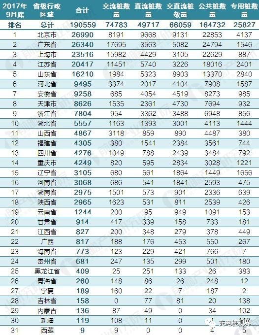 截止到2017年9月,省級行政區(qū)域內(nèi)所擁有的公共類充電樁數(shù)量前十的分別為:北京26990個(gè)、廣東26340個(gè)、上海23516個(gè)、江蘇20417個(gè)、山東16210個(gè)、安徽9495個(gè)、河北9258個(gè)、天津8626個(gè)、浙江7804個(gè)、湖北5557個(gè)。