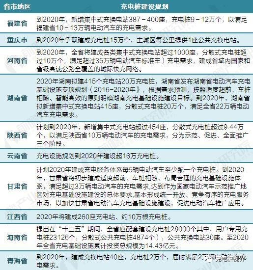根據(jù)前瞻產(chǎn)業(yè)研究院發(fā)布的《2017-2022年中國電動(dòng)汽車充電樁行業(yè)發(fā)展前景預(yù)測與投資戰(zhàn)略規(guī)劃分析報(bào)告》統(tǒng)計(jì),目前有20余個(gè)省市發(fā)布了電動(dòng)汽車充電樁規(guī)劃,匯總?cè)缦拢?/div>