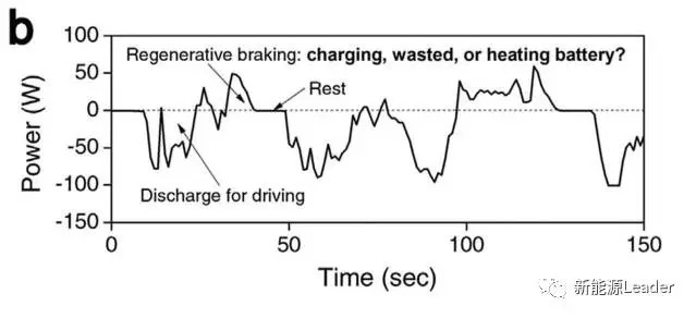 我們知道在電動汽車的使用過程中,除了正常行駛外,還會發(fā)生剎車等情況,電動汽車在剎車等過程中一般都會進行能量回收,在鋰離子電池溫度足夠的時候,這部分能量會直接存儲在鋰離子電池中,但是當鋰離子電池溫度過低時,為了防止鋰離子電池在低溫下充電造成負極表面析鋰,這部分能量通常被浪費掉。Guangsheng Zhang利用自加熱電池快速自加熱的特性,設計了低溫下的制動能量回收管理程序,在電池溫度較低時,回收能量會首先用于加熱電池,當電池溫度加熱到合適溫度后,然后會將回收的能量存儲到電池。