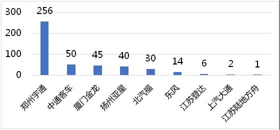 2017年9月份,江蘇區(qū)域新能源客車上險(xiǎn)量為444輛,其中宇通客車上險(xiǎn)256輛,奪得該區(qū)域冠軍頭銜,占比達(dá)57.7%,江蘇本地新能源客車品牌上險(xiǎn)量相對(duì)較少。