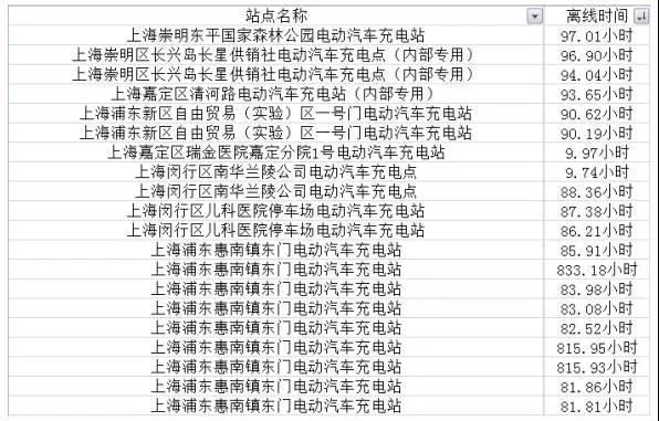 圖2 上海充電樁離線時間統(tǒng)計表部分