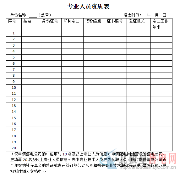 附件5:專業(yè)人員資質(zhì)表