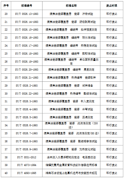 國(guó)家能源局日前發(fā)布了2018年第9號(hào)文件,宣布廢止一批能源領(lǐng)域推薦性行業(yè)標(biāo)準(zhǔn)和中止一批能源領(lǐng)域推薦性行業(yè)標(biāo)準(zhǔn)計(jì)劃。其中涉及廢止《油氣輸送管道系統(tǒng)節(jié)能監(jiān)測(cè)規(guī)范》、《石蠟氯離子及硫酸根離子試驗(yàn)法》、《電站鍋爐技術(shù)條件》等204項(xiàng)能源領(lǐng)域推薦性行業(yè)標(biāo)準(zhǔn),中止《電除塵器控制電源評(píng)價(jià)導(dǎo)則》、《煤堆抑塵劑》、《煤堆抑塵效果評(píng)價(jià)方法》、《煤粉工業(yè)鍋爐及系統(tǒng)》等99項(xiàng)能源領(lǐng)域推薦性行業(yè)標(biāo)準(zhǔn)計(jì)劃。