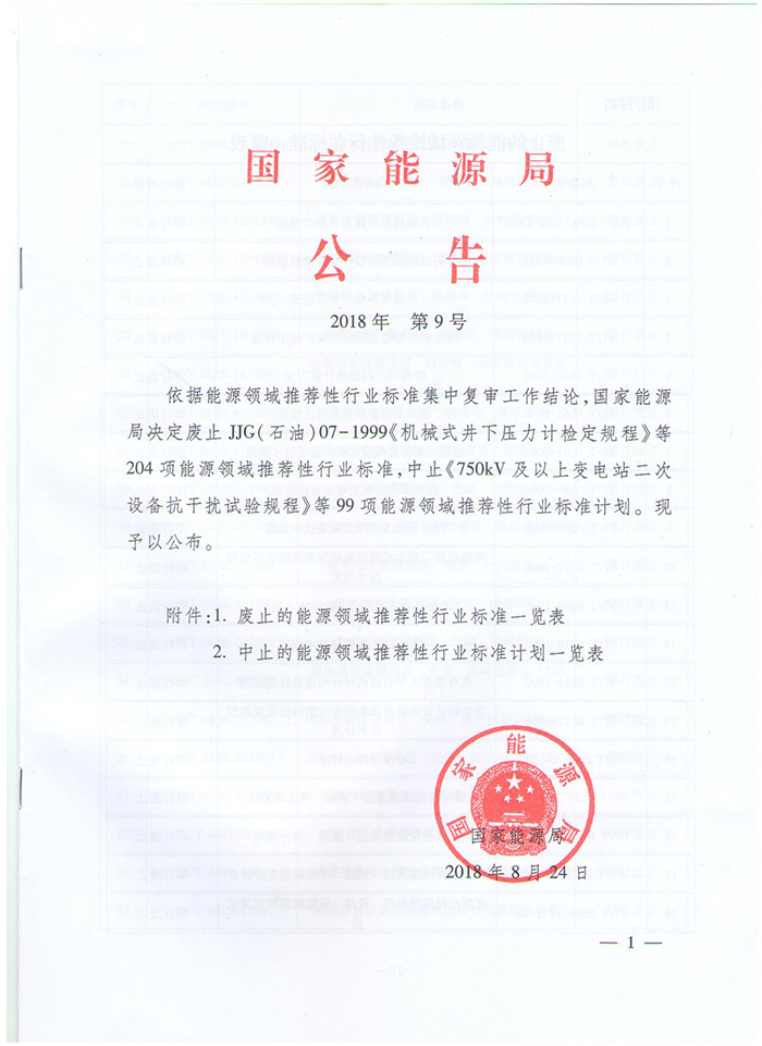 國(guó)家能源局日前發(fā)布了2018年第9號(hào)文件,宣布廢止一批能源領(lǐng)域推薦性行業(yè)標(biāo)準(zhǔn)和中止一批能源領(lǐng)域推薦性行業(yè)標(biāo)準(zhǔn)計(jì)劃。