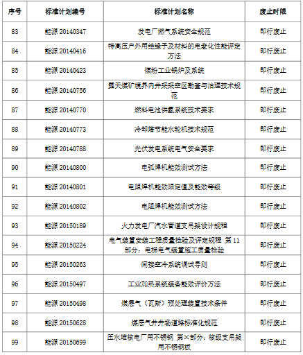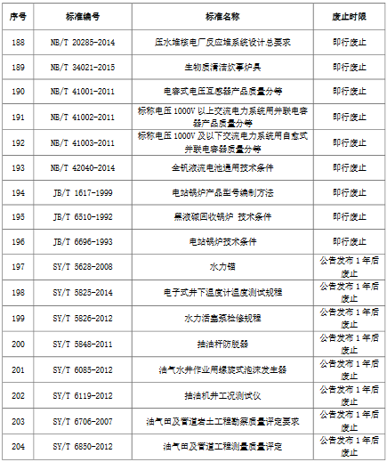 國(guó)家能源局廢止204項(xiàng)能源領(lǐng)域推薦性行業(yè)標(biāo)準(zhǔn)、中止99項(xiàng)標(biāo)準(zhǔn)計(jì)劃