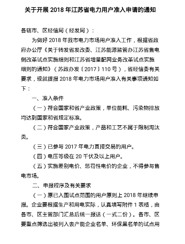 江蘇省電力用戶準(zhǔn)入 發(fā)改委經(jīng)信委標(biāo)準(zhǔn)不一