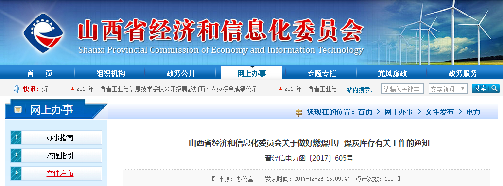 山西經(jīng)信委關(guān)于做好燃煤電廠煤炭庫(kù)存有關(guān)工作的通知