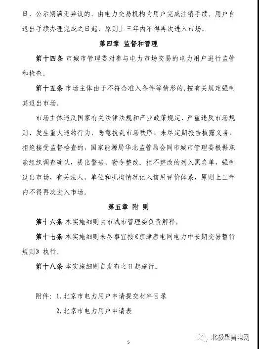 首都電力交易中心日前發(fā)布了《北京市電力用戶準(zhǔn)入與退出管理實(shí)施細(xì)則》、《北京市售電公司準(zhǔn)入與退出管理實(shí)施細(xì)則》。在《北京市電力用戶準(zhǔn)