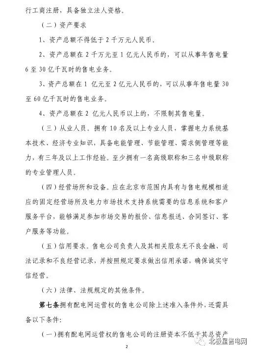 2、資產(chǎn)總額在 2 千萬元至 1 億元人民幣的,可以從事年售電量6 至 30 億千瓦時(shí)的售電業(yè)務(wù)。