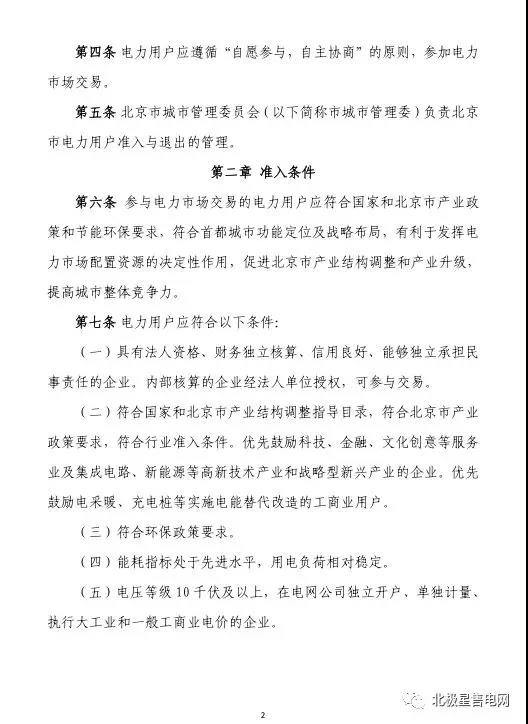 在《北京市電力用戶準(zhǔn)入與退出管理實(shí)施細(xì)則》規(guī)定,電力用戶應(yīng)符合以下條件: