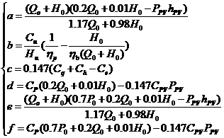 一般項目計算中ka、kq、kh、r、k、kOM、kH、ke、kQ、kp、ηb為定值(見表1),則常數a~f的簡化公式為: