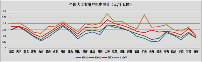 從各個(gè)區(qū)域大工業(yè)用戶電度電價(jià)電壓等級(jí)差異看