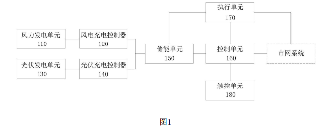 所述風能蓄電池分別與所述風電充電控制器和所述控制單元連接,所述光能蓄電池分別與所述光伏充電控制器和所述控制單元連接。
