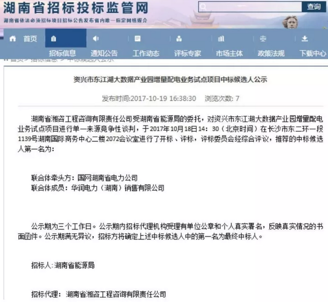 據(jù)報道,列入國家發(fā)改委第一批增量配電試點的湖南省的全部4個項目,包括湘潭經(jīng)濟技術(shù)開發(fā)區(qū)、益陽高新技術(shù)產(chǎn)業(yè)開發(fā)區(qū)、衡陽白沙洲工業(yè)園、資興市東江湖大數(shù)據(jù)產(chǎn)業(yè)園,其項目業(yè)主均已確定。最引入注目的是,國網(wǎng)湖
