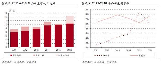 配網(wǎng)節(jié)能業(yè)務(wù)已明顯拉動(dòng)公司盈利:根據(jù)公司2016年年報(bào),全年實(shí)現(xiàn)營業(yè)收入16.65億元,歸母凈利潤1.68億元,其中配網(wǎng)節(jié)能業(yè)務(wù)2016年實(shí)現(xiàn)營收3.73億元,毛利率28.09%。配電網(wǎng)節(jié)能業(yè)務(wù)的注入明顯拉動(dòng)了公司的盈利能力,10.09%的凈利率顯著高于此前的較低水平。據(jù)我們測(cè)算,2016全年配電網(wǎng)節(jié)能業(yè)務(wù)貢獻(xiàn)凈利潤約7000萬元左右(其中16年3月注入項(xiàng)目實(shí)現(xiàn)凈利潤3,196萬元)。
