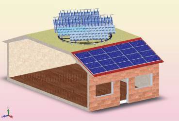 圖1 安置在屋頂?shù)囊粋€(gè)可"供熱+供電"轉(zhuǎn)盤示意圖